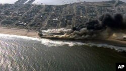 В курортном городе Сисайд-Парк, штат Нью-Джерси, взорвалась бомба, спрятанная в пластиковом мусорном баке. Жертв и разрушений нет.