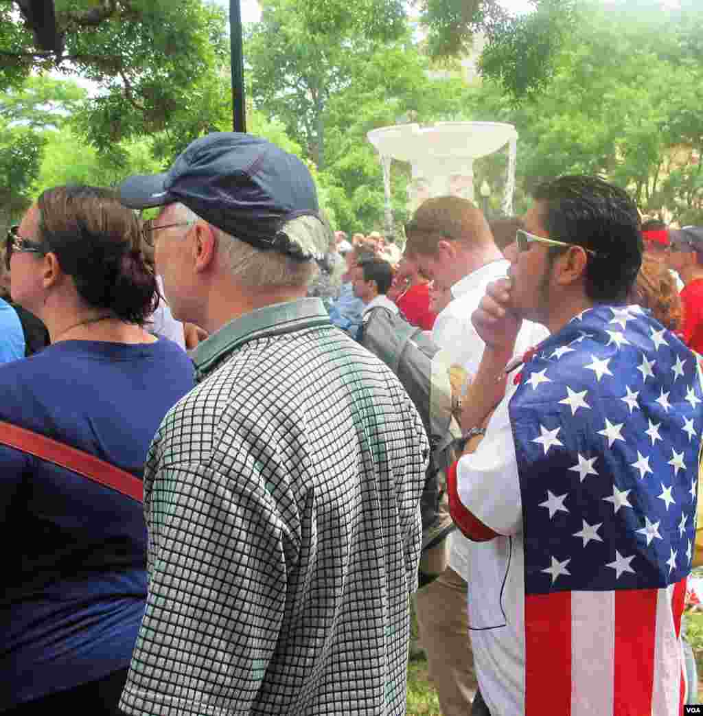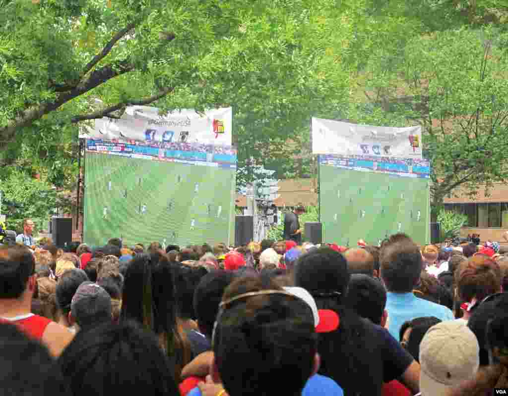 За ходом футбольного матча США и Германии наблюдали в самом центре Вашингтона: в районе Дюпон Серкл были установлены специальные экраны. Болельщики обеих сборных дружелюбно и весело поболели за любимые команды.
