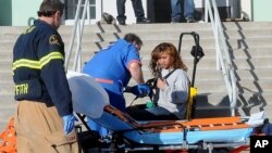 Тяжелораненый старшеклассник, которому также 16 лет, был доставлен на вертолете в медицинский центр в соседнем городе Бейкерсфилде. Учитель также получил незначительное ранение в голову от оружейной дроби.