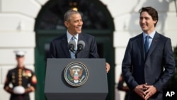 Обама подчеркнул общность ценностей двух стран в ходе приветственной церемонии в честь прибытия Трюдо, которая состоялась на Южной лужайке. Он отметил, что две страны объединяют такие ценности, как всеобщее здравоохранение, свобода вероисповедания и этническое многообразие.