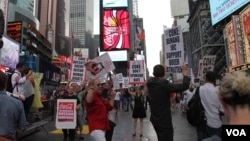 «Сегодня мы отмечаем 50-летие марша за права человека в Вашингтоне, -- сказала Елена «Голосу Америки». – Естественно, что люди, которые принимают участие в маршах, не меняют моментально политику стран. На том в марше в Вашингтоне 50 лет назад тоже ничего не произошло, кроме того, что люди выразили свое недовольство. И после этого разные группы стали обращать на это внимание. Тогда лет назад был сделан первый шаг к равенству. И вот мы хотим сегодняшней демонстрацией тоже сделать первый шаг».