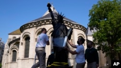 Уменьшенная копия статуи Свободы, основанная на оригинальной гипсовой модели для ее старшей сестры, стоящей на острове Эллис, вскоре отправится в поездку в США, где она будет выставлена на День независимости в качестве подарка Франции.