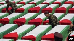Палестинцы провели траурные церемонии на Западном берегу и в секторе Газа, после того как власти Израиля передали им тела 91 палестинского боевика, в том числе тела террористов-смертников. Палестинские власти называют их героями и мучениками, владелец небольшого магазина на Западном берегу Махмуд Валид говорит: