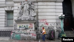 Нью-йоркская полиция очистила лагерь, разбитый протестующими против расизма и бездомными рядом с мэрией, после того как президент Дональд Трамп пригрозил направить федеральных агентов на помощь правоохранительным органам в крупнейшем американском городе.