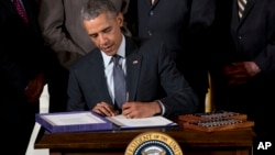 Эти законопроекты президент подписал в понедельник в Белом доме во время церемонии, во время которой он высоко оценил сотрудничество между законодателями от обеих партий. Оно было необходимо для утверждения законопроектов Конгрессом после продолжительной и напряженной кампании, в ходе которой президент столкнулся с противодействием со стороны демократов и получил неожиданную поддержку со стороны республиканцев.