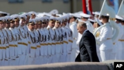 Парады ВМФ прошли в воскресенье, помимо Петербурга, также в аннексированном Севастополе, во Владивостоке, Североморске, Петропавловске-Камчатском, Балтийске, а также на базе Тартус в Сирии.