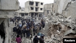 Сирийское правительство заявляет, что повстанцы могут покинуть осажденные районы вместе со своими семьями, если сложат оружие. Повстанческие силы отвергают это предложение, считая его уловкой.