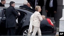 Кортеж в котором находятся президенты, вице-президенты и их супруги прибыл к Капитолю. Начинается торжественная церемония представления высоких гостей. Сперва места должны занять дети нового вице-президента Майка Пенса, потом нового президента Дональда Трампа, потом Мишель Обама и Джилл Байден, потом - Барак Обама и Джо Байден. Последними займут свои места Майк Пенс и Дональд Трамп.