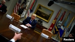 Президент выступил перед журналистами, сидя за столом, места на противоположном конце которого занимали лидер республиканцев в Сенате Митч Макконнелл и спикер Палаты представителей Пол Райан. Два кресла, приготовленные для представителей демократического меньшинства, были пусты.