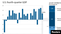 Министерство торговли сообщило в пятницу, что в первом квартале ВВП вырос в годовом исчислении на 0,8 процента. Показатель оказался на 0,3 процента выше прогнозов правительственных экономистов в начале этого года, но все же отражает замедление темпов экономического роста.