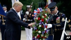 В понедельник на Арлингтонском кладбище близ Вашингтона прошла торжественная церемония по случаю Дня поминовения. В церемонии принял участие президент США Дональд Трамп.