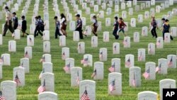 В эти выходные над надгробиями Арлингтонского национального кладбища реют тысячи флагов. Вот уже более 60 лет специальное церемониальное подразделение, известное как Старая гвардия, ставит флаги на этом масштабном военном кладбище в преддверии Дня поминовения. Этот национальный праздник, отмечаемый в последний понедельник мая, посвящен памяти всех американских военнослужащих, погибших при исполнении своего воинского долга.